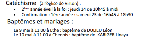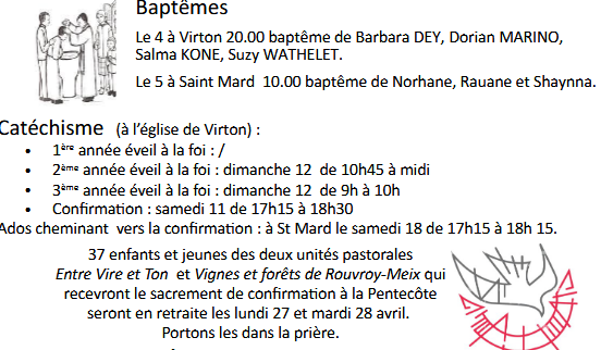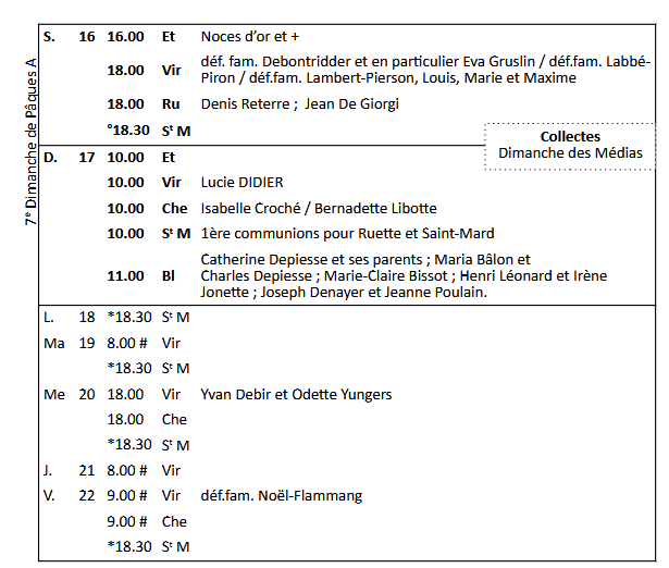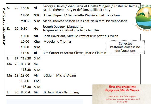 • une célébration eucharistie ou de la Parole est aussi proposée à l’hopital de St Mard pour les patients et leurs proches.
