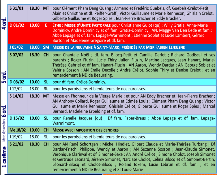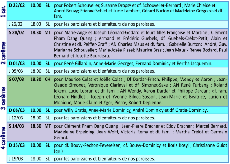 Si vous souhaitez recevoir les informations et horaires des messes des paroisses de Châtillon, Meix-le-Tige et Saint-Léger dans votre boite mail tous les mois, vous pouvez le demander en envoyant un mail à coindufeu[at]gmail.com